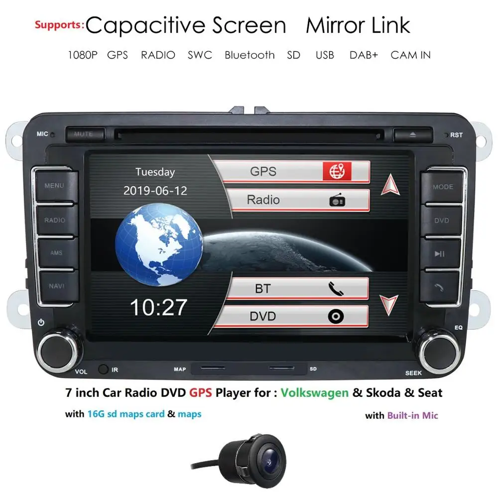 2 Din 7 inch Car DVD GPS Radio Player For Volkswagen golf 5 6 touran passat B6 B7 sharan JATTA Skod