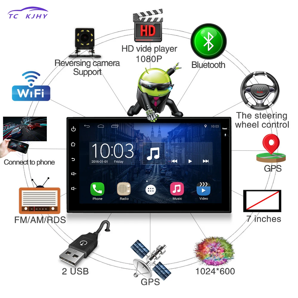 2 Din Car Radio 7 Inches Dvd Automotivo Android Player Navigation Reversing Camera GPS Bluetooth St