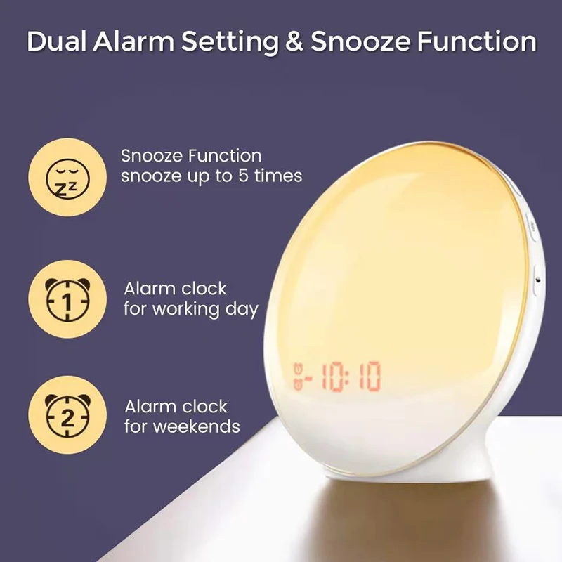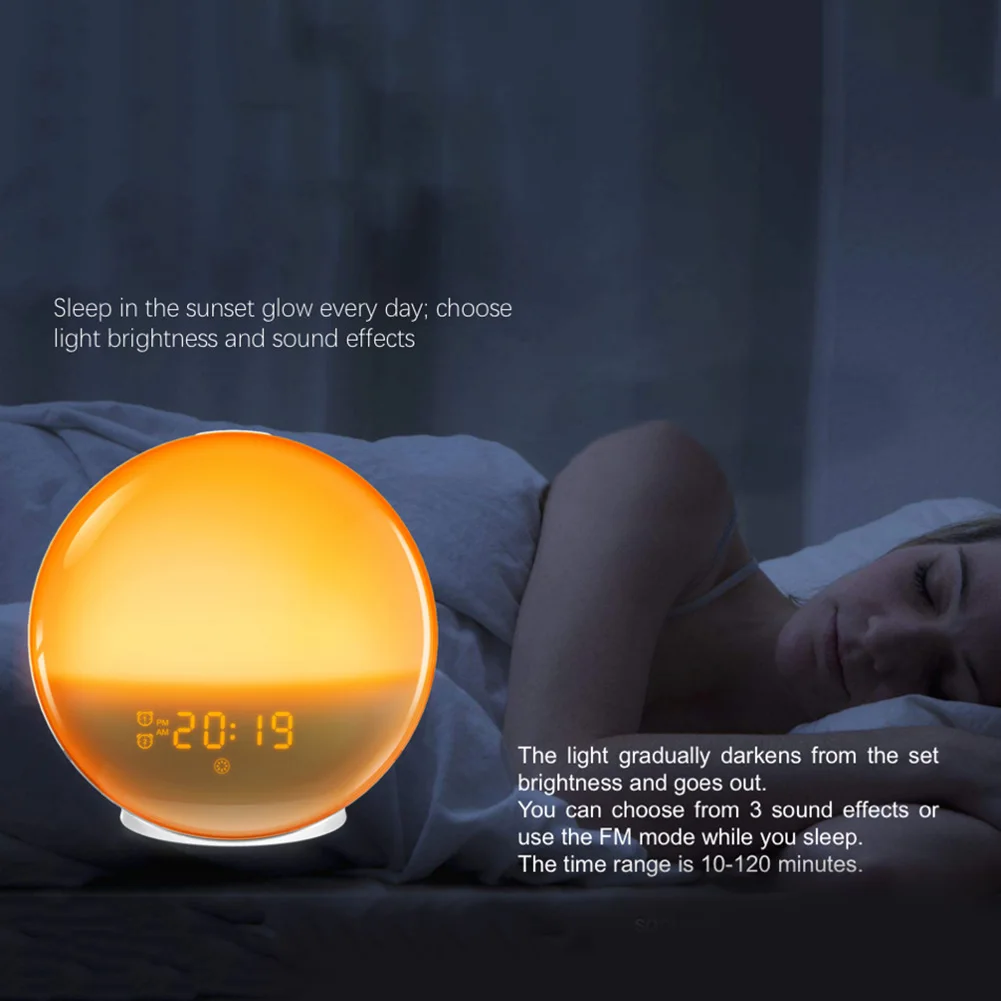 LED Light Alarm Clock Sunrise Simulation Sleep Aid with FM Radio Snooze Clock for Bedroom @LS